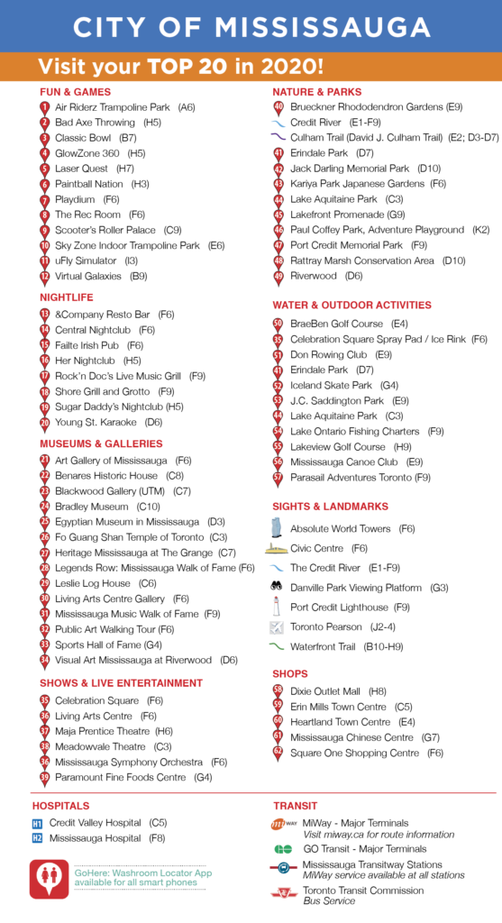 The final printed and digital copies of the 2020 Mississauga Visitor Guide and map pages will be available later this month.